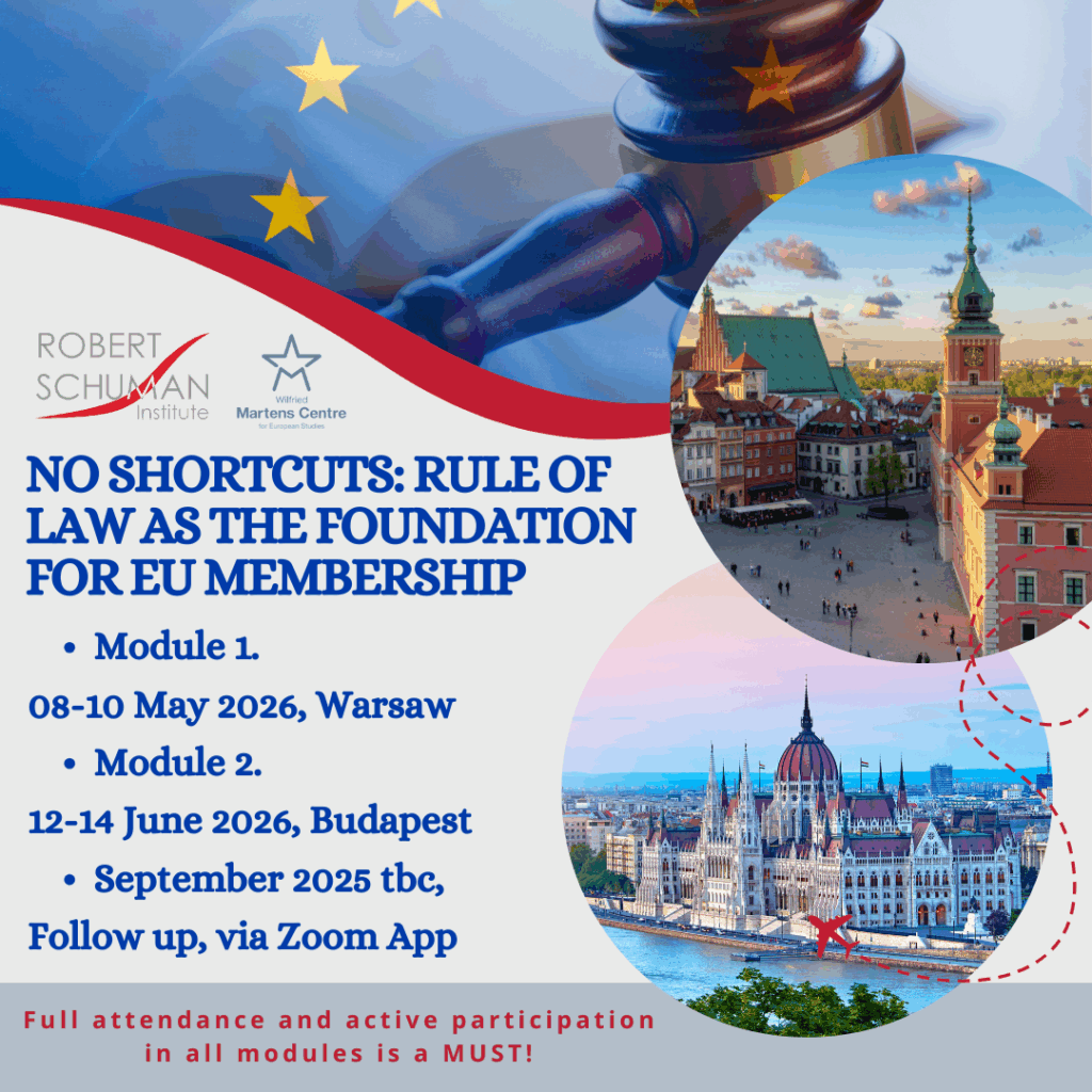The Robert Schuman Institute, in cooperation with the Wilfried Martens Centre for European Studies, is happy to announce a call for applications for an important initiative for young individuals (aged 23-35 years), political activists, students, NGOs activists from WB and EaP countries: Albania, Armenia, Belarus, Bosnia and Herzegovina, Georgia, Kosovo, Montenegro, Moldova, North Macedonia, Serbia, and Ukraine.